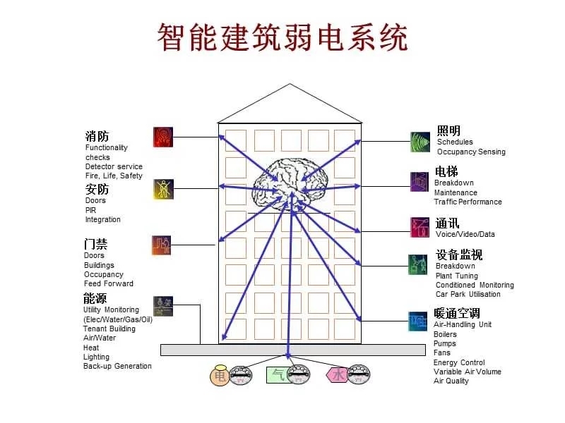 最近几年,未来的楼宇被人们认为将会是充满了各种各样的智能设备。楼宇控制网络中的传感器、执行器、阀门等都是智能的,楼宇的基础设施能无缝隙的将数据网和控制网连接起来,形成整体的楼宇网络。 整体的楼宇网络将成为未来楼宇控制的典范。在九十年代中,人们逐渐对楼宇自控中信息的传递形成了新的概念: 智能设备、传感器、执行器形成能自主的控制环境即智能的温度传感器、 电灯开关、窗帘、电梯按钮、读卡机等能混和一体的工作。 网络新一代的智能设备能无缝隙的将各种网络如国际互联网、企业网或楼宇的广域网、局域网等连接起来。 全球联网,随着网络、设备和系统的发展,用户能在世界上任何地方,任何时间对智能楼宇网络上任何一点进行远程访问。 整体的楼宇网络概念已不再是一个对将来的期望,今天它正在发生中。提供智能设备、子系统和系统的厂家正在如指数般的成长。这种推动力主要来自于业主们,他们对楼宇物业集成度的要求越提越高,这也是合理的。因为在今天,楼宇自控子系统如门禁、闭路电视、电梯、空调暖通、保安和消防中的智能产品都已问世了。